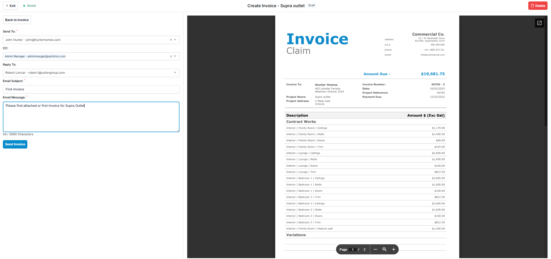 Simplify your billing, create and send client invoices instantly with PaintProjex