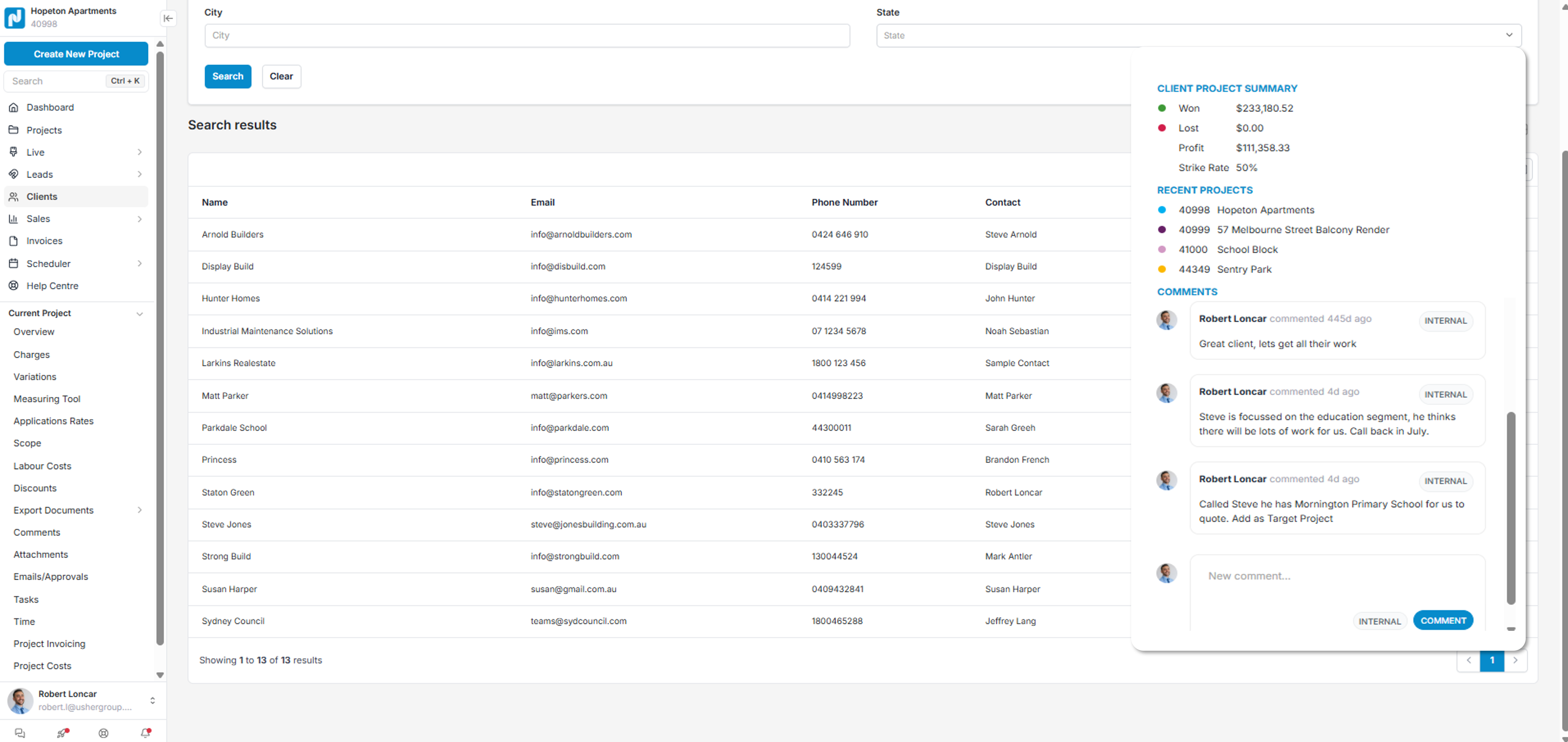 Manage your client data in one place, for perfectly organised relationships and accessibility
