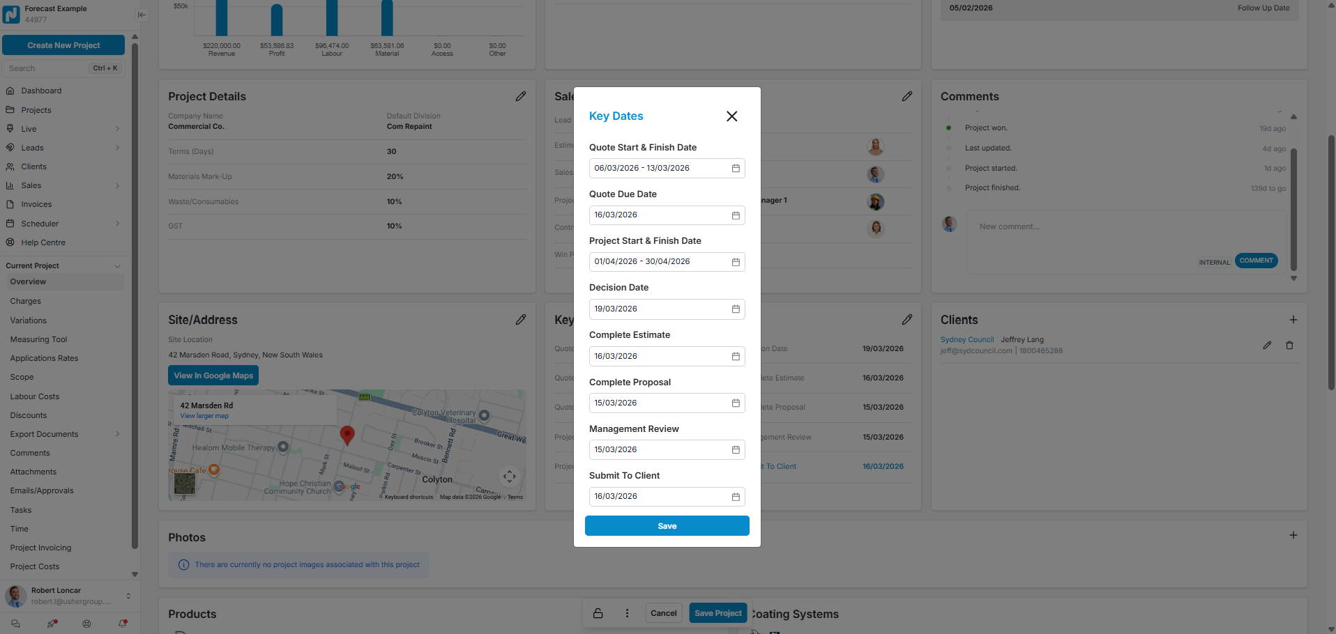 All your critical data organised in one place, so you can keep an eye on what matters most. Track your revenue steams and profit with PaintProjex