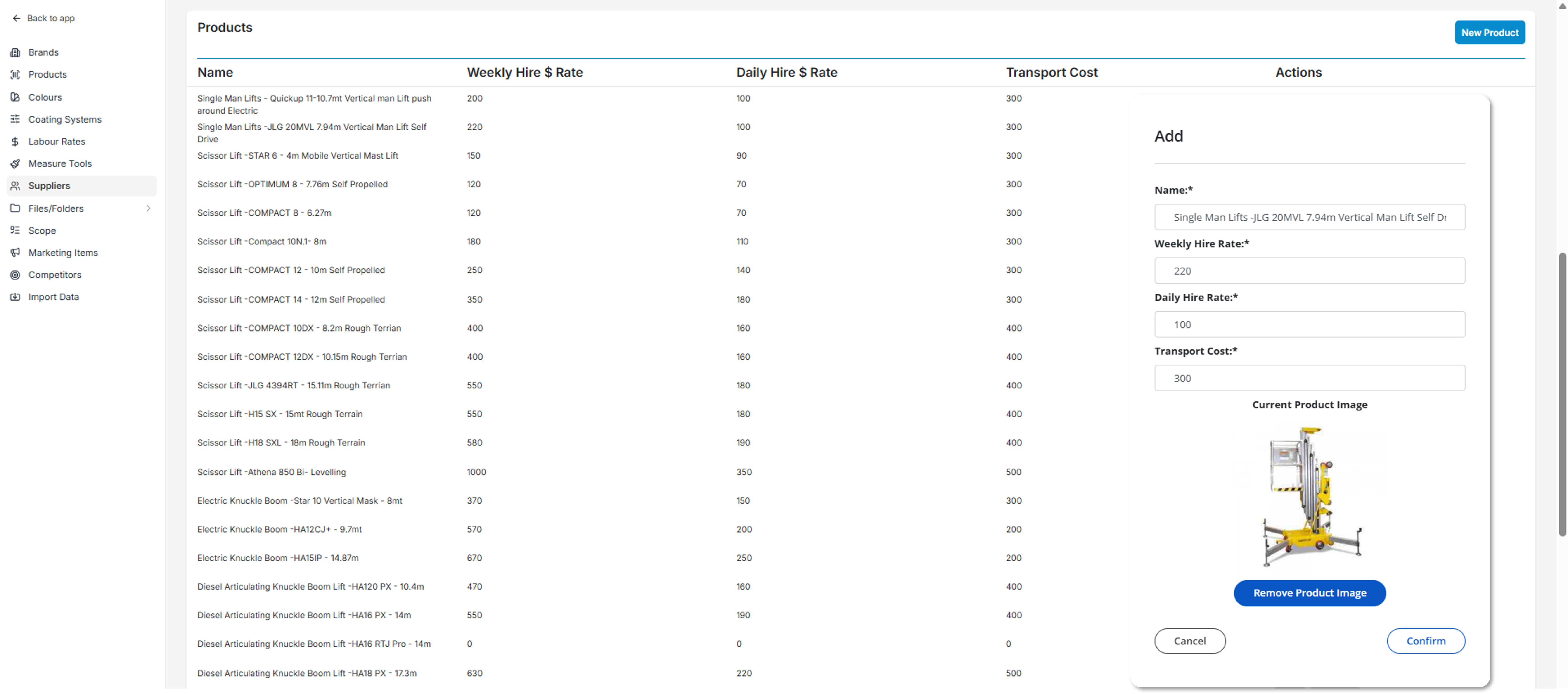 Quickly select and add specialised equipment to your quotes within PaintProjex